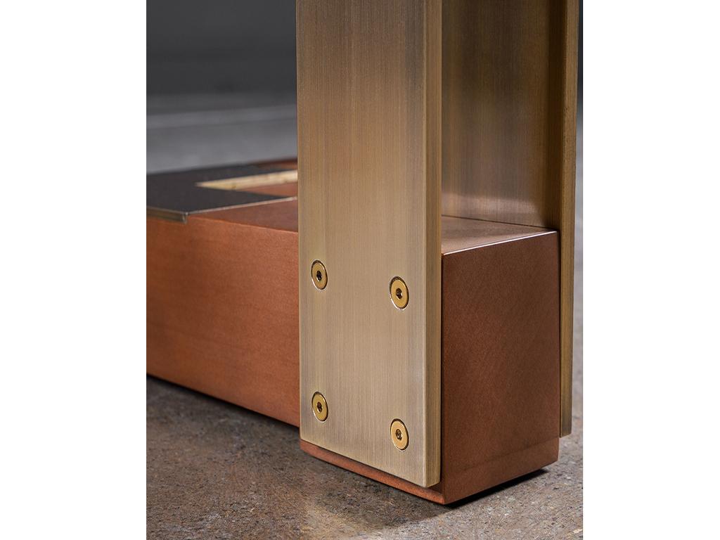 Previous Next Previous Next Hege Hege dining table combination of glass, bronze plating and beech wood can be made with electrostatic paint metal and stone or wood top in dimensions of 8, 10 and 12 people.