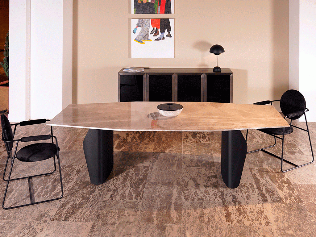 Previous Next Previous Next Shell Very well-made and unique shell dining table with all-metal bases, rough and iron with electrostatic color and with the ability to order a stone or wood top of your choice in dimensions of 8 to 12.