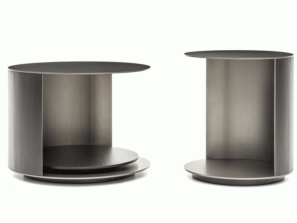 Round side table combining wood and metal can be made in custom dimensions.