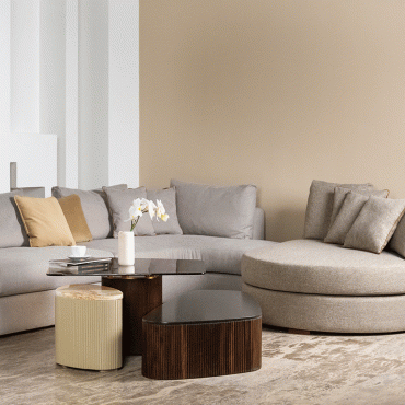 Previous Next Previous Next Brera Brera full fabric sofa with woden and metal bases include two wooden boxes for more comfortable and more accessible space reception.